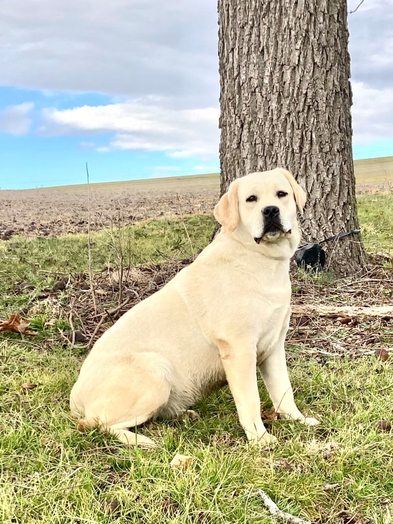 Sired by Toby, Mighty Miss Magnolia is as gentle as they come. She is a mellow yellow 75lb sweetheart, who never ever is difficult/hyper. She loves belly-rubs and watching football. Like all of our labs, Magnolia comes from health tested and genetically sound lines. She is OFA Hip(excellent)/Elbow/Eye cert. Magnolia’s pups are guaranteed to never be affected by the following-